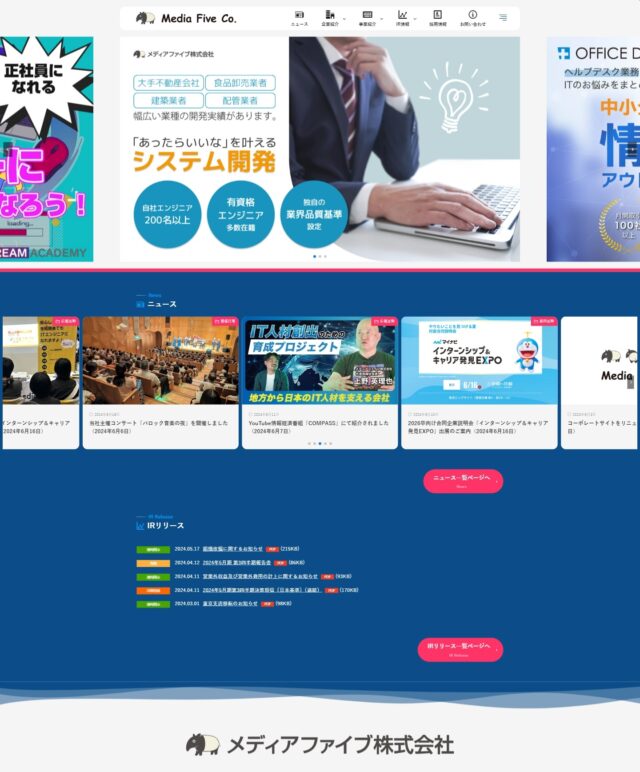 メディアファイブ株式会社は、システムの開発から運用・保守までをワンストップで提供している企業です。